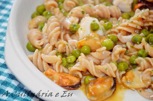 Junte o peixe e os mexilhões e sirva bem quente.